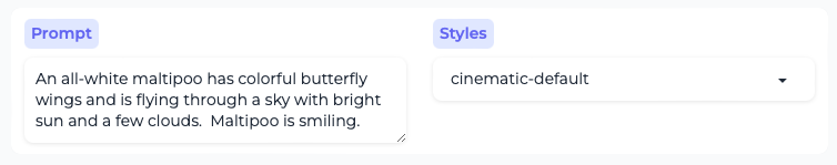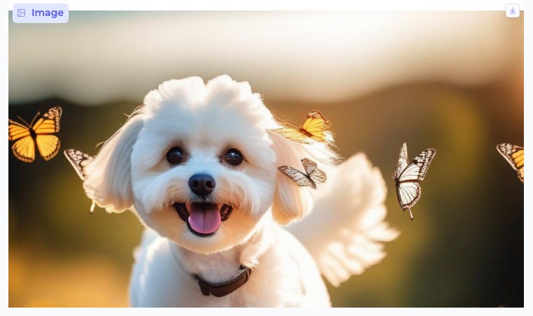 It got the Cinematic part right, with the blurred background. But the Butterfly Wings on a Dog? I guess not many training photos of that on the web.