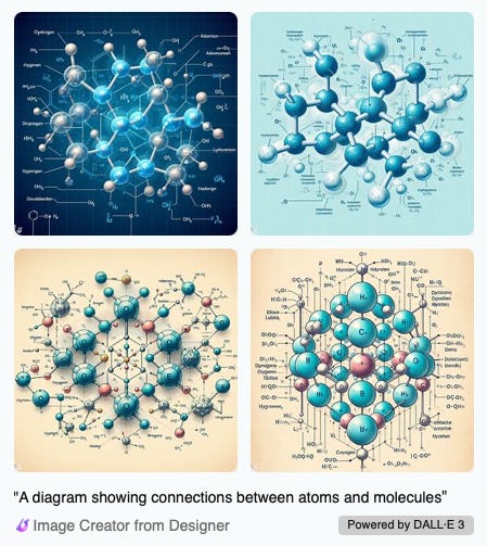 And another one: “A diagram showing connection between atoms and molecules.”
