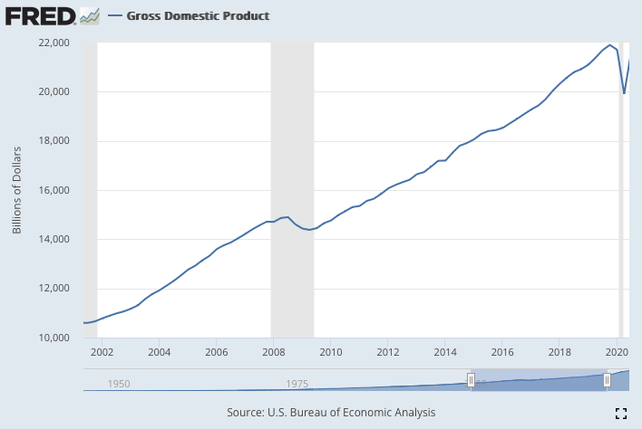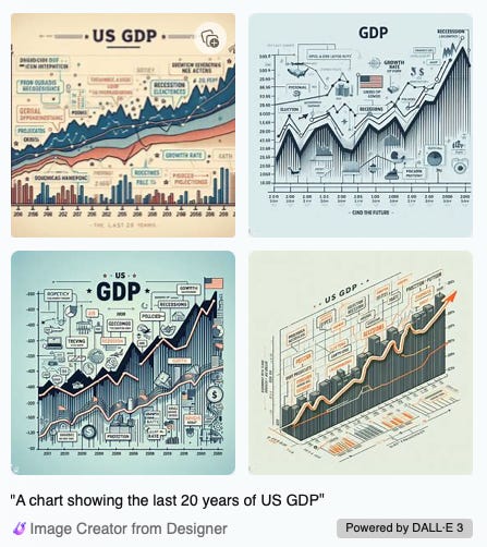 And here is a prompt to Dall-E3 via Bing: “A chart showing the last 20 years of US GDP”: