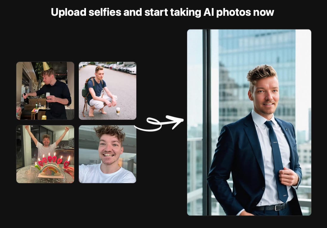 Avatar.ai generates avatars, and, more useful for the working world, a professional headshot “photoshoot” (generating a headshot from your photos) for $29, headshotpro.com: