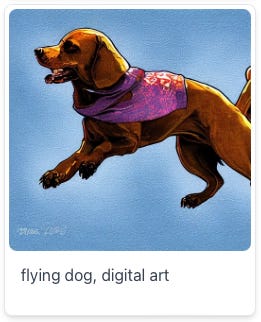 Like FireFly and a few others, they have a “prompt database” you can use to get started. For example, a search for “flying dogs” gave me a pre-made image:
